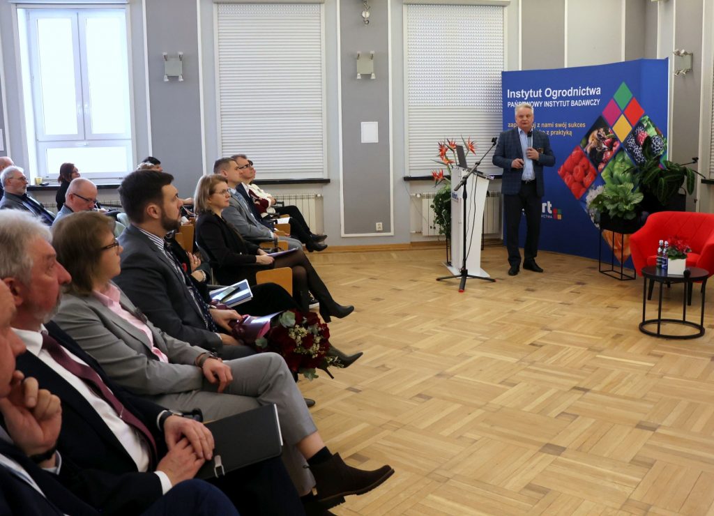 17 lutego 2026 roku w Instytut Ogrodnictwa – Państwowym Instytucie Badawczym odbyła się 64. Ogólnopolska Konferencja Ochrony Roślin Sadowniczych „Sadownictwo 2026 – klimat, bezpieczeństwo i wymogi rynku”. Wydarzenie zorganizowano w trybie hybrydowym, umożliwiając uczestnictwo zarówno stacjonarne, jak i online. Patronat honorowy nad konferencją objął Minister Rolnictwa i Rozwoju Wsi Stefan Krajewski, a w imieniu Ministerstwa w wydarzeniu uczestniczył podsekretarz stanu, Pan Adam Nowak. Podkreślił on znaczenie konferencji w kontekście wyzwań dla rozwoju sadownictwa, zapewnienia jakości i bezpieczeństwa owoców oraz dostosowania produkcji do wymogów rynku.