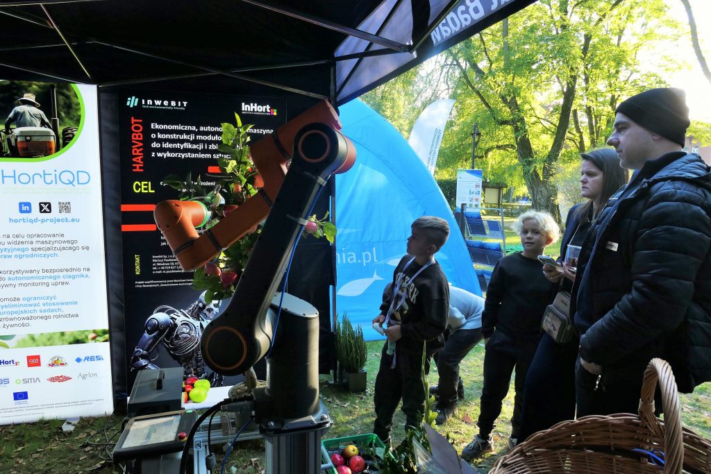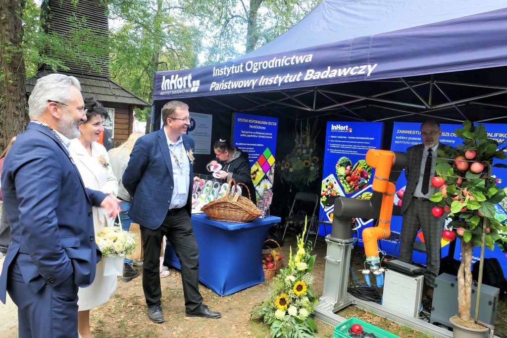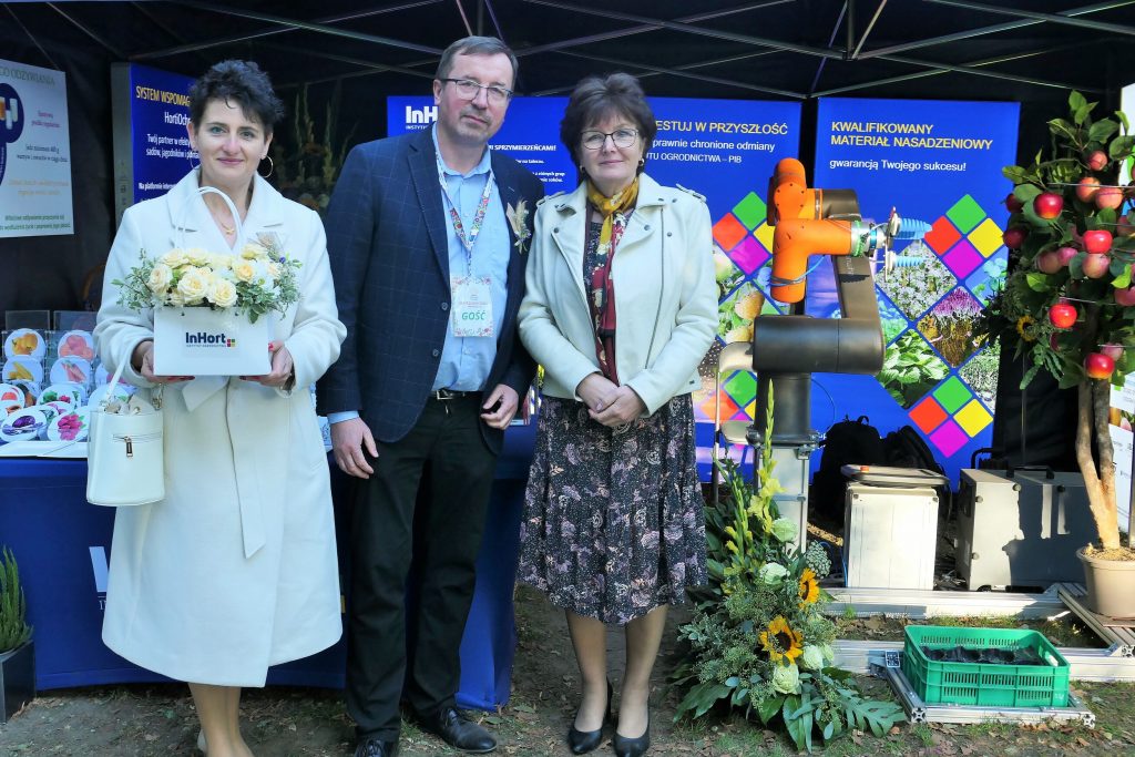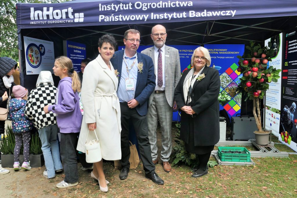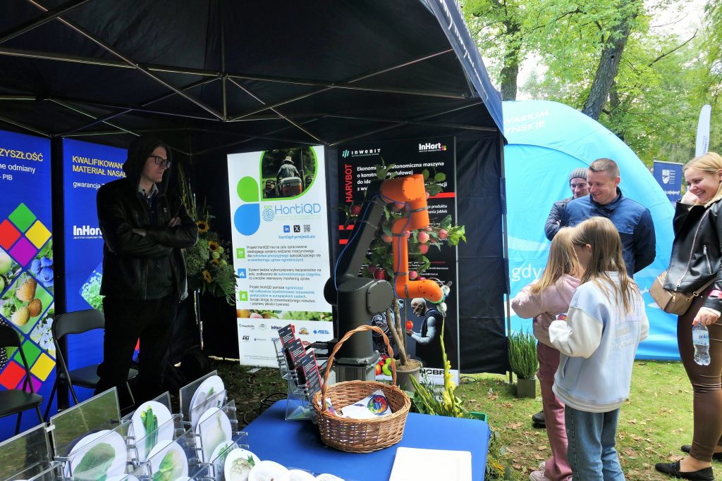 W wydarzeniu uczestniczył również Instytut Ogrodnictwa – Państwowy Instytut Badawczy, reprezentowany przez Panią Dyrektor, prof. dr hab. Dorotę Konopacką, oraz pracowników Zakładu Agroinżynierii i Zakładu Upowszechniania i Promocji. Na stoisku zaprezentowano innowacyjne rozwiązania opracowane w Instytucie, w tym Harvbot – ekonomiczną, autonomiczną maszynę o konstrukcji modułowej do identyfikacji i zbioru jabłek z wykorzystaniem sztucznej inteligencji, projekt HOrti QD (automatyzowane monitorowanie w sadownictwie poprzez analizę spektralną z wykorzystaniem detektorów kropek kwantowych i filtrów optycznych o wysokiej rozdzielczości) oraz internetowy system wspomagania decyzji w ochronie roślin ogrodniczych (Horti Ochrona).