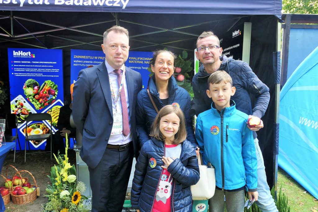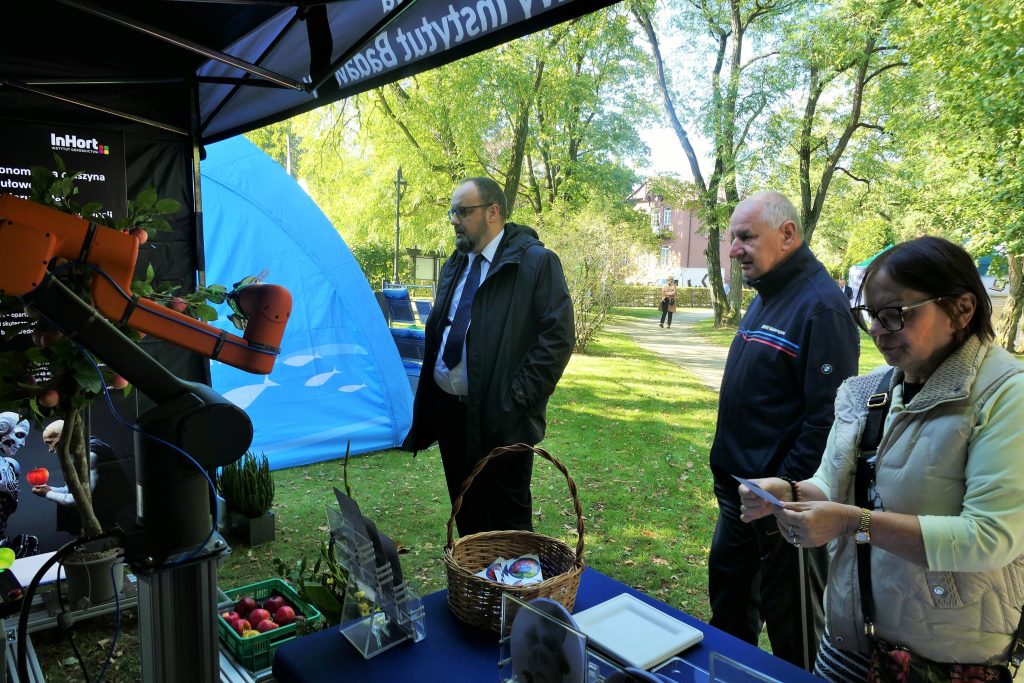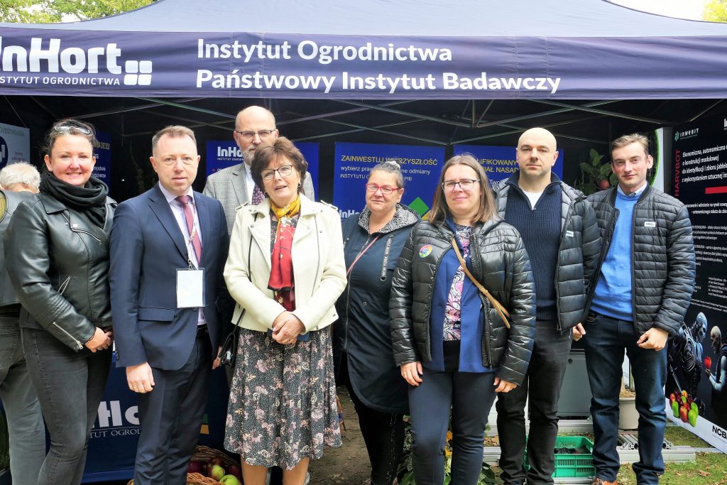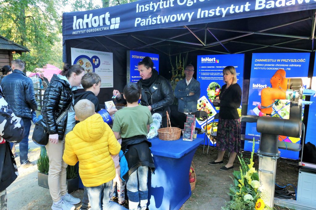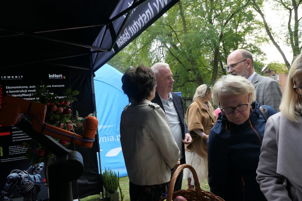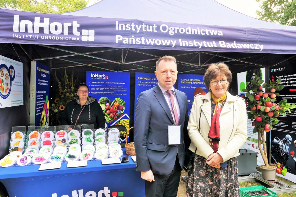 W wydarzeniu uczestniczył również Instytut Ogrodnictwa – Państwowy Instytut Badawczy, reprezentowany przez Panią Dyrektor, prof. dr hab. Dorotę Konopacką, oraz pracowników Zakładu Agroinżynierii i Zakładu Upowszechniania i Promocji. Na stoisku zaprezentowano innowacyjne rozwiązania opracowane w Instytucie, w tym Harvbot – ekonomiczną, autonomiczną maszynę o konstrukcji modułowej do identyfikacji i zbioru jabłek z wykorzystaniem sztucznej inteligencji, projekt HOrti QD (automatyzowane monitorowanie w sadownictwie poprzez analizę spektralną z wykorzystaniem detektorów kropek kwantowych i filtrów optycznych o wysokiej rozdzielczości) oraz internetowy system wspomagania decyzji w ochronie roślin ogrodniczych (Horti Ochrona).