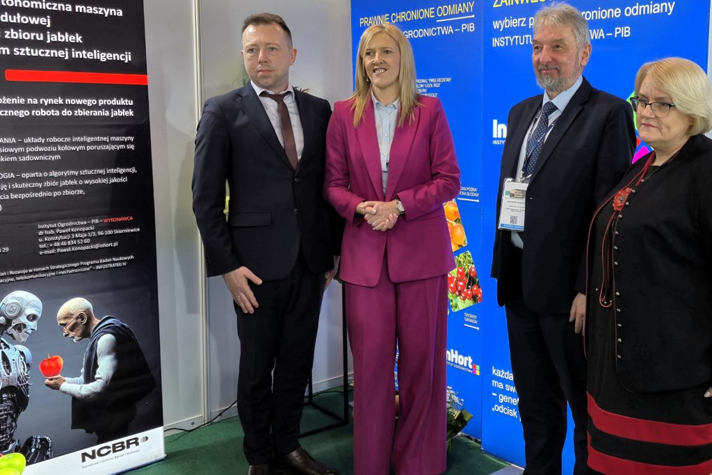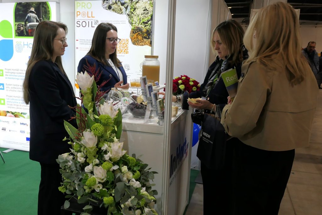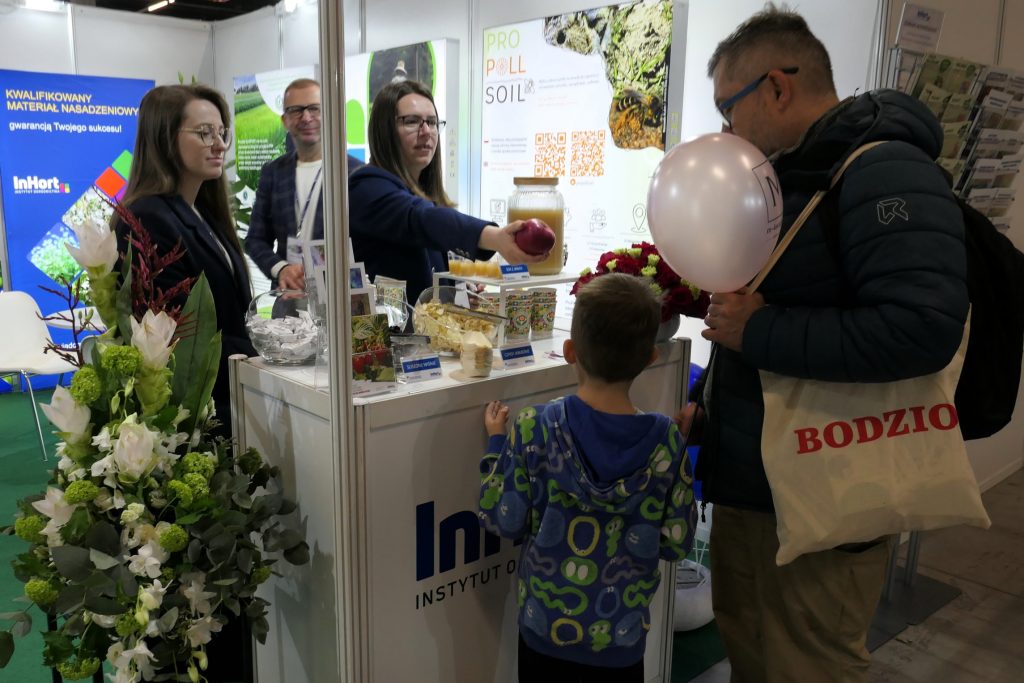 Na stoisku przedstawiono założenia wybranych projektów badawczych realizowanych w Instytucie, w tym: ProPollSoil – „Rozumienie i zarządzanie właściwościami i stanem gleby dla ochrony zapylaczy zależnych od gleby”, SUPPORT – „Wspieranie zintegrowanej ochrony roślin i stosowania pestycydów niskiego ryzyka”, HortiQD – „Zautomatyzowane monitorowanie w sadownictwie poprzez analizę spektralną z wykorzystaniem detektorów kropek kwantowych i filtrów optycznych o wysokiej rozdzielczości”, HARVBOT – „Ekonomiczna, autonomiczna maszyna o konstrukcji modułowej do identyfikacji i zbioru jabłek z wykorzystaniem sztucznej inteligencji”.